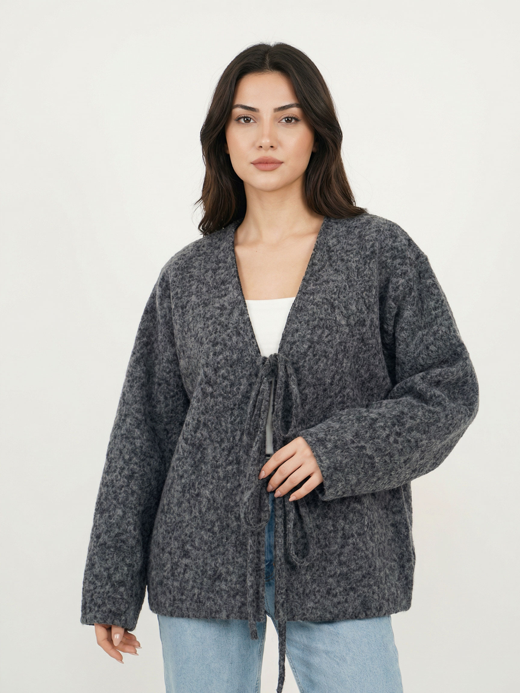 Önden Bağlamalı Soft Triko Hırka Ekru