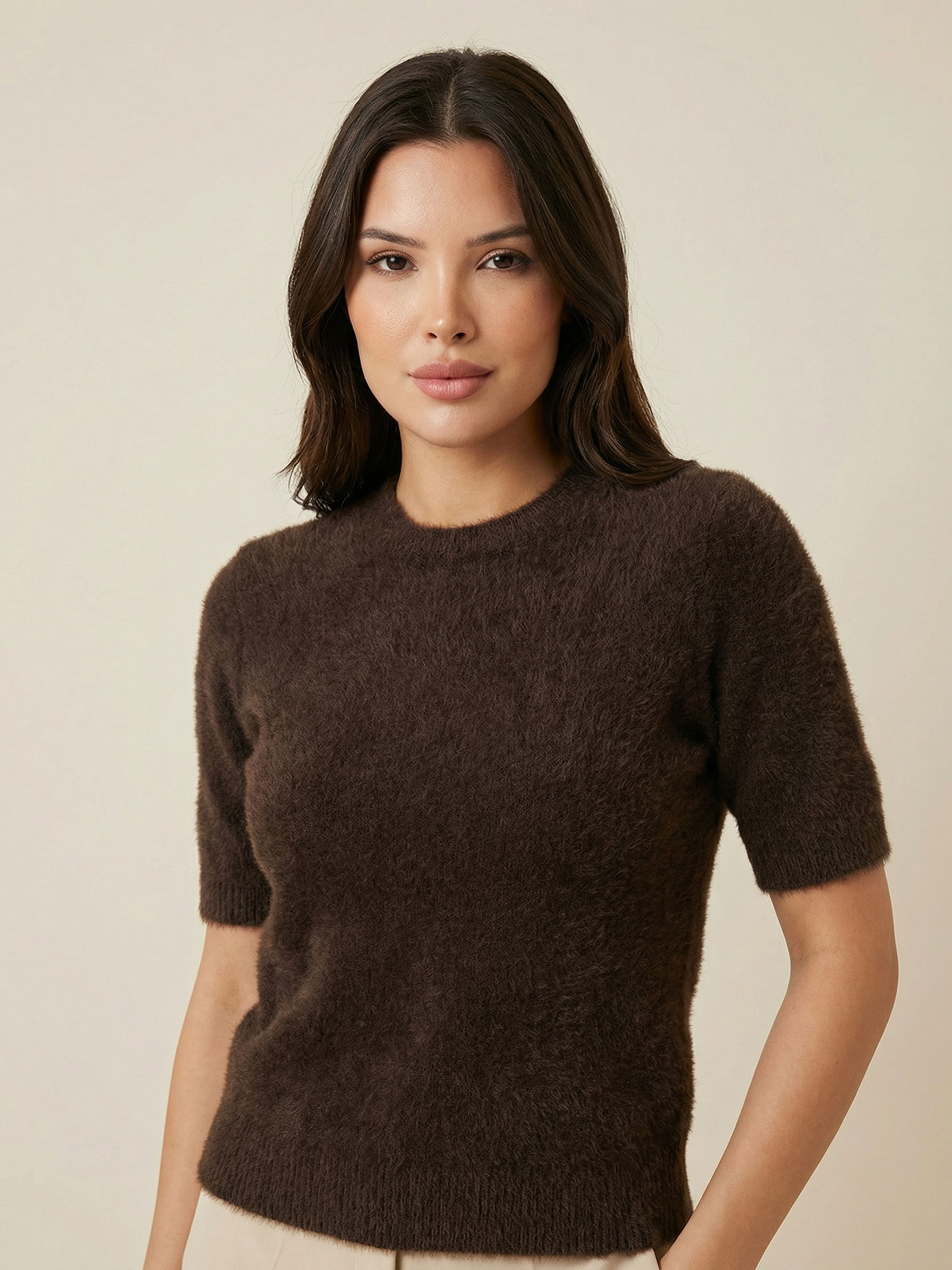 Bisiklet Yaka Oversize Kadın Triko Kazak - Kahverengi