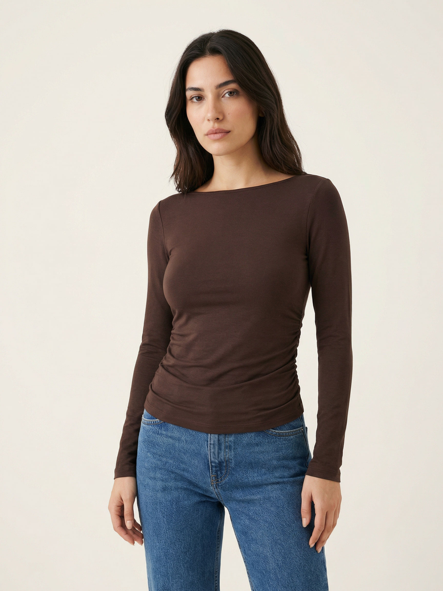Modal Kayık Yaka Yanı Büzgülü Body