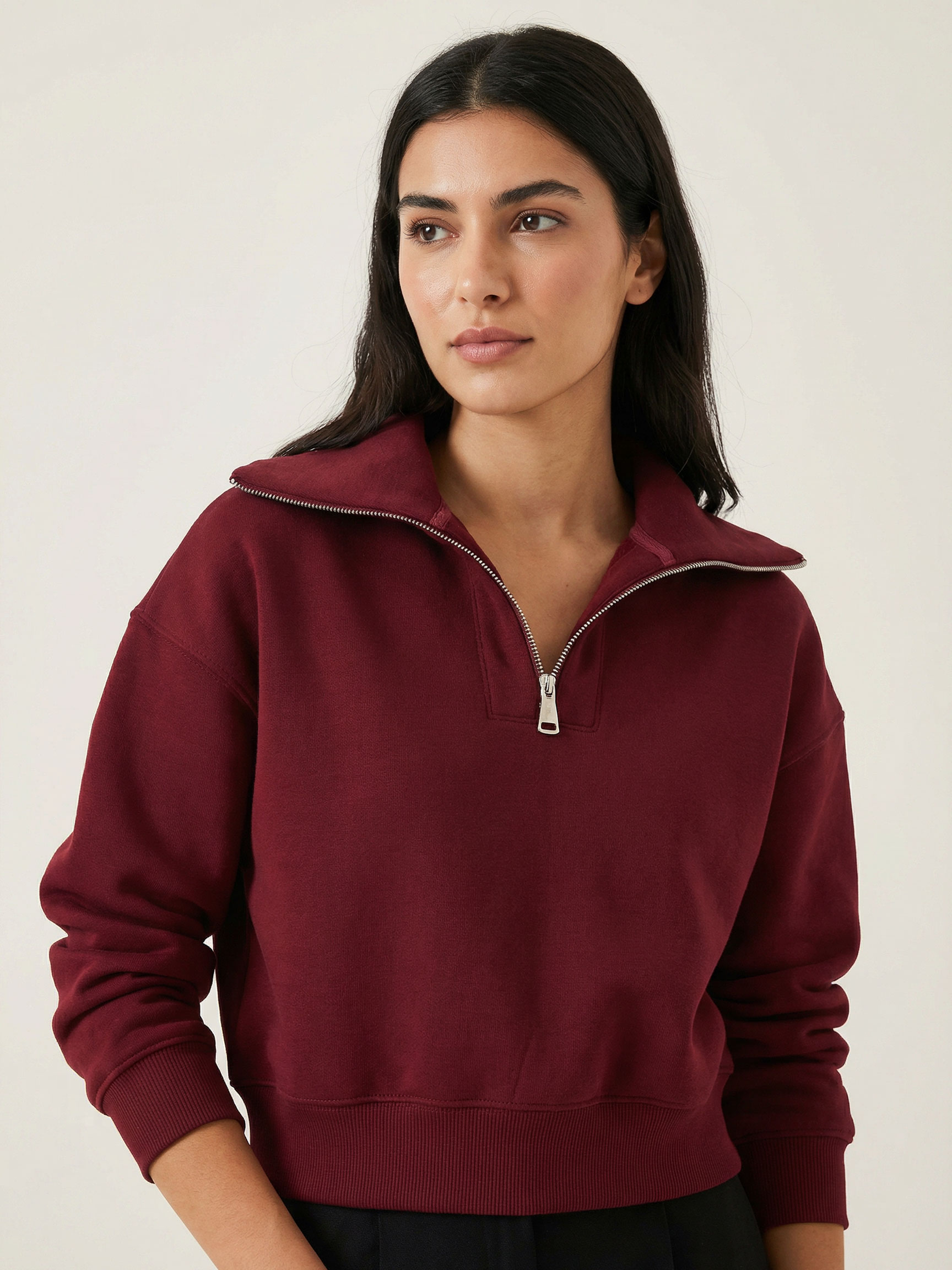 Üç İplik Şardonlu Fermuarlı Sweatshirt